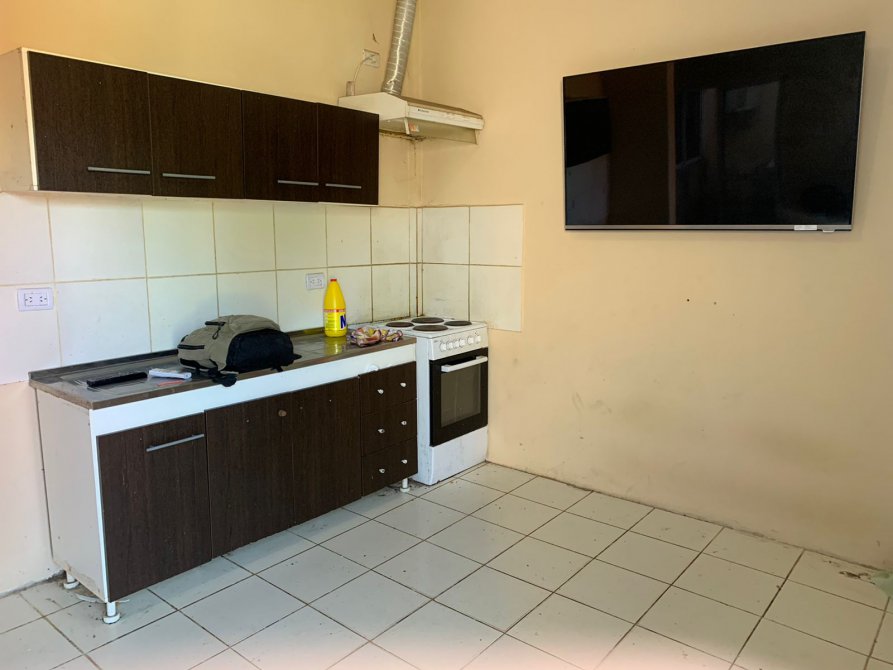 COCINA - COMEDOR CON ALACENA Y BAJO MESADA, COCINA ELECTICA CON EXTRACTOR , TELEVISION 60 PULGADAS Y AIRE ACONDICIONADO